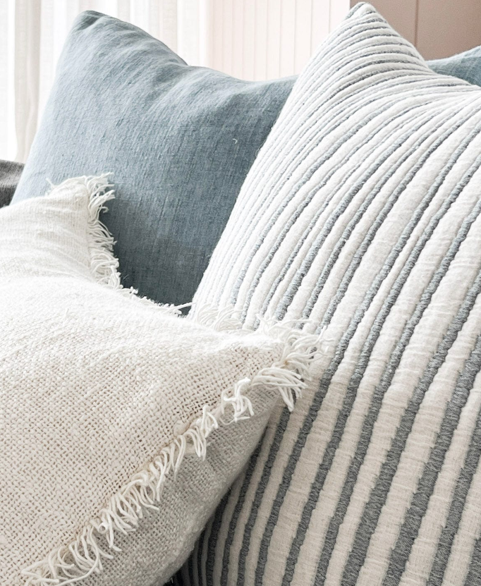 Cushions are available in a range of sizes for every type of bedroom and living room decor in plush velvets, linens and cottons with many colours and textures to choose from.
