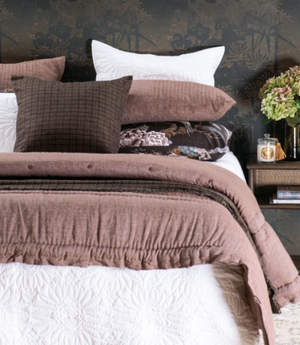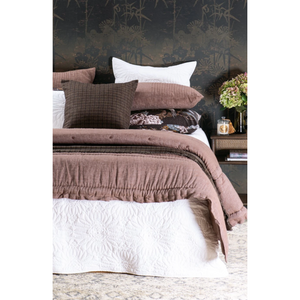 Inspired by clusters of plum blossoms, this comforter features Bianca Lorenne's signature French knots, adorning the beautiful rosewood coloured 100% linen chambray. Matching eurocases also available.