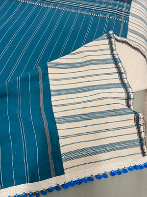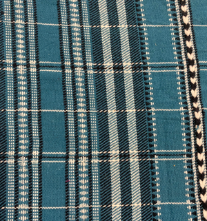 This unique Injiri bed cover  can also be used as a floor rug or picnic blanket. Hand loomed by traditional artisans in a thick cotton/linen un beautiful tones of green, black & cream.