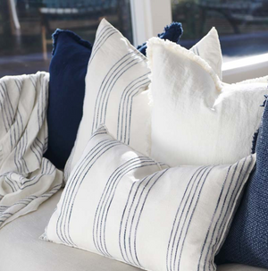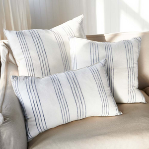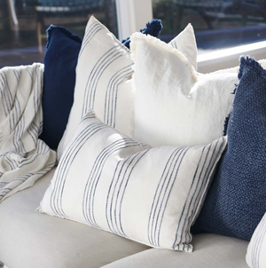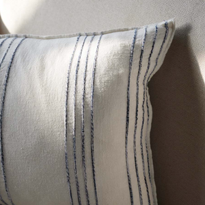 Crisp white linen always feels fresh. Pair it with organic textured stripes in hues of white and blue and it becomes our divine Rockpool Linen Cushion. Crafted from the finest quality linen with subtle woven stripes, Rockpool works beautifully layered with our velvet & linen cushions as a throw pillow on your bed or sofa.