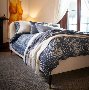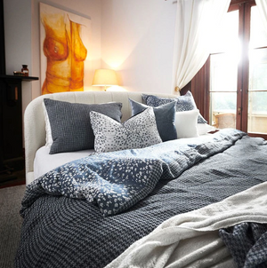 The Ordonne Linen Duvet Set (incl. 2 x pillowslips) in Navy takes bedding to a new level & won't go unrecognised in any space. Crafted using a revolutionary and luxurious blend of linen, cashmere and cotton, this duvet set will inject sophistication into your bedroom. Fully reversible & finished with button enclosure and detailed with a frayed edge, have your choice between the timeless houndstooth or mystical glacier pattern as your bedroom centrepiece. One word - stunning.